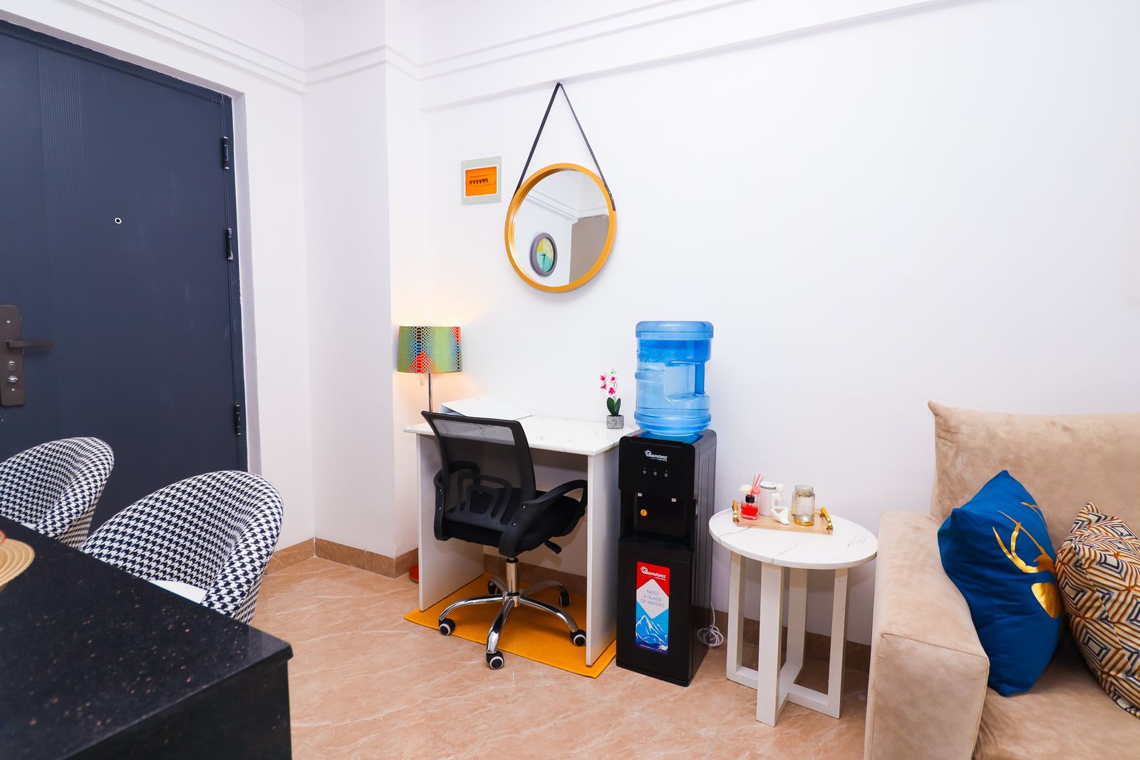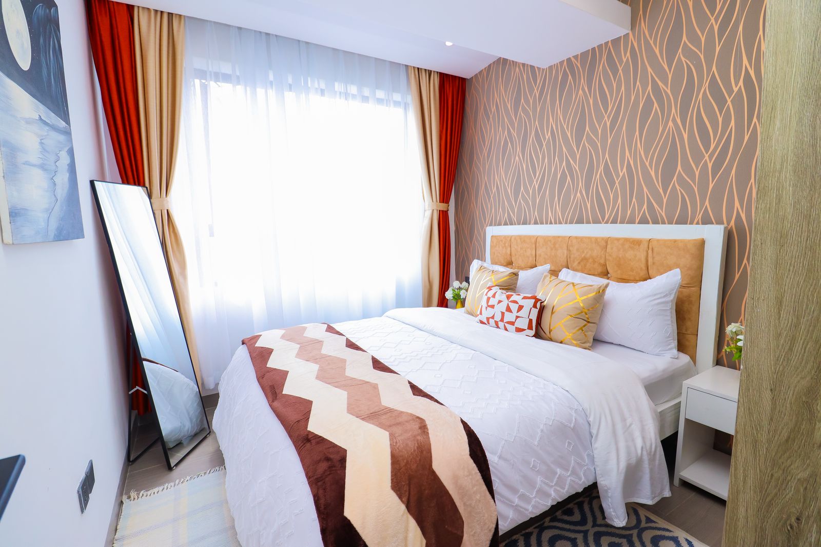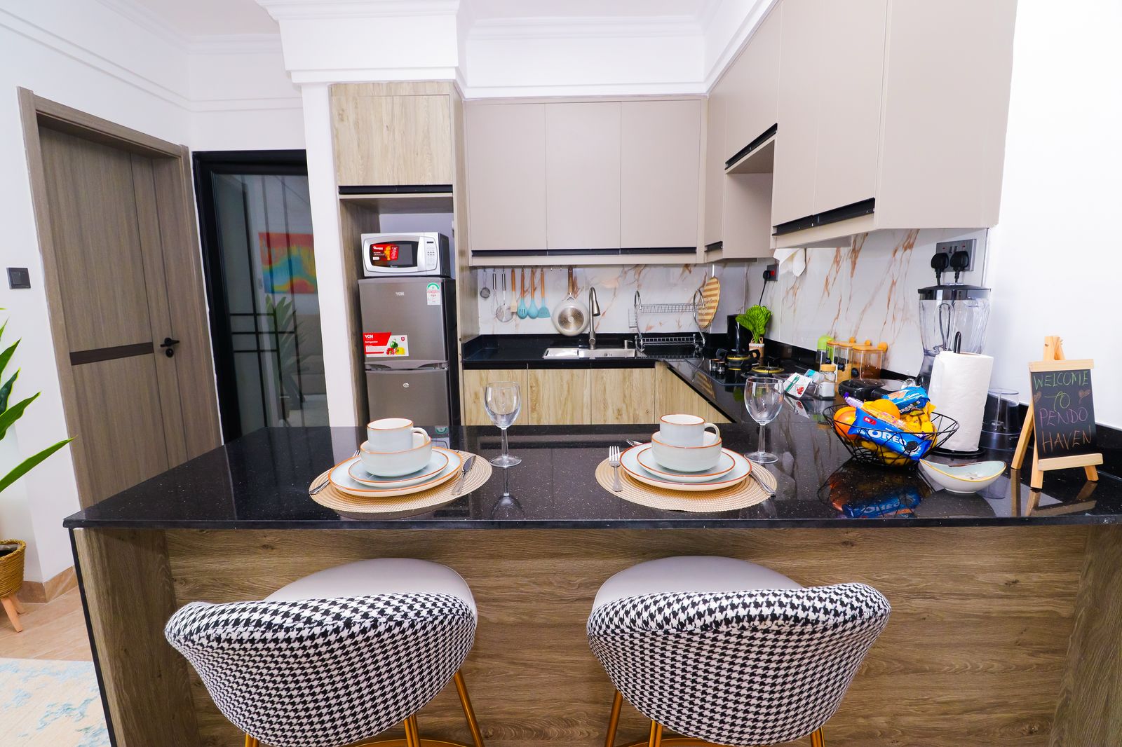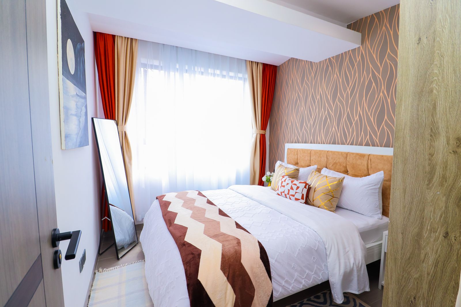 Enjoy serenity in this luxe space. Modern 1BR with Chic amenities, Sunset Views & Charm. Comes with a stunningly furnished living room with a 55″ HDTV, fully equipped kitchen, cozy bedroom, comfy office space, an airy private balcony & a modern bathroom. Kitchen & Bathroom essentials available on site for your absolute convenience. Free WIFI. Close proximity to Yaya Center, Carrefour Market, easy access to CBD, Ngong Road, Kilimani & all other social amenities; Eateries,Entertainment joints etc