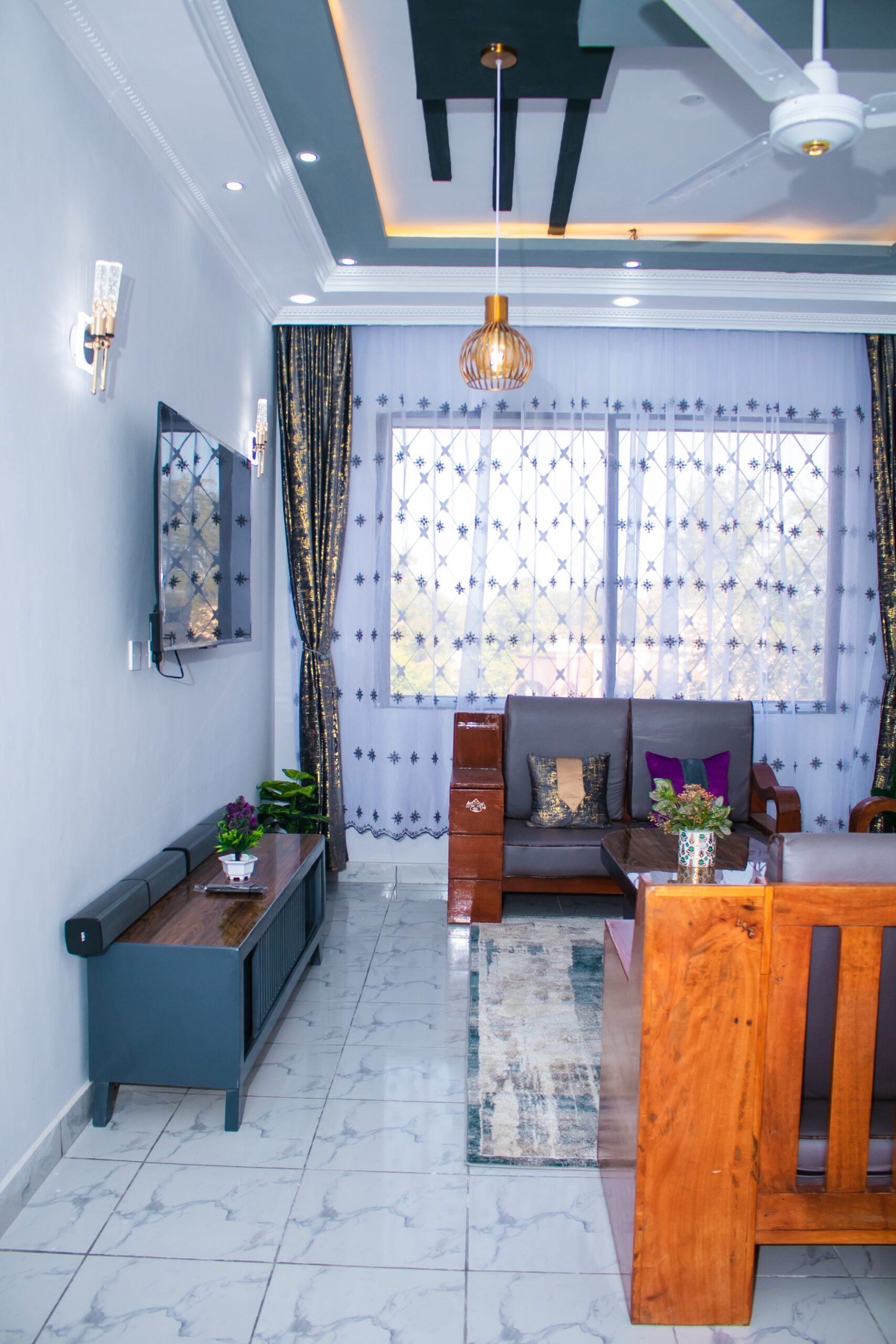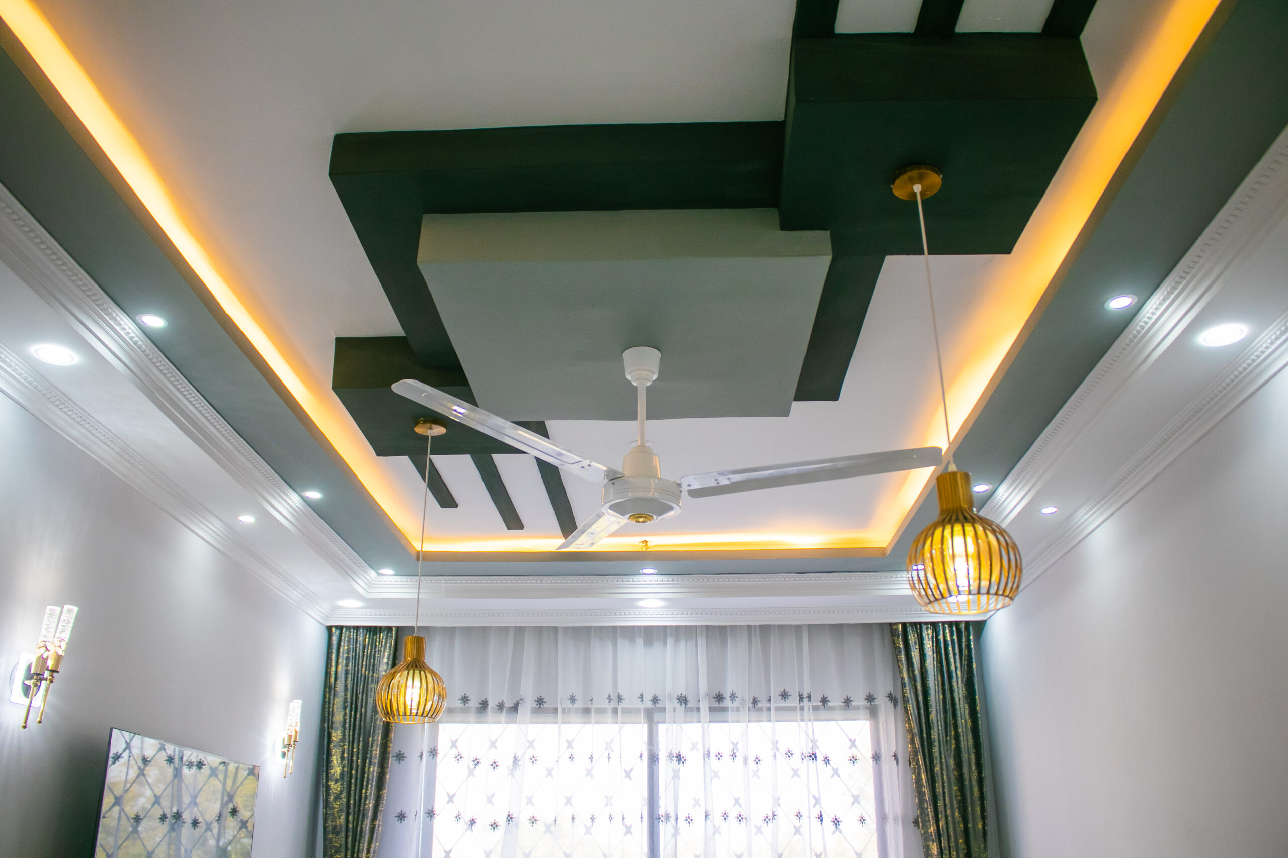 A beautifully designed interior with elegant gypsum ceilings that add