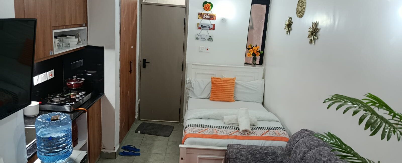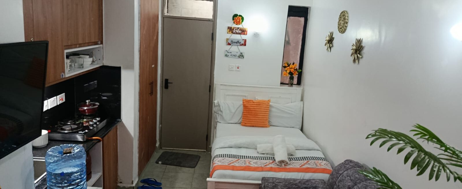 Peace Point Homes is a cozy, stylish studio designed to offer guests a calm and comfortable stay away from the noise of the city. The space is thoughtfully arranged to feel both modern and homely, making it ideal for business travelers, couples, or solo guests.Guests can enjoy a comfortable bed, fast WiFi, a smart TV for entertainment, and a well-equipped kitchenette with essentials for preparing simple meals. The studio is clean, secure, and perfect for both short and extended stays.Whether you are visiting for work, relaxation, or just passing through Nairobi, Peace Point Homes offers a peaceful environment where you can unwind, recharge, and feel at home.