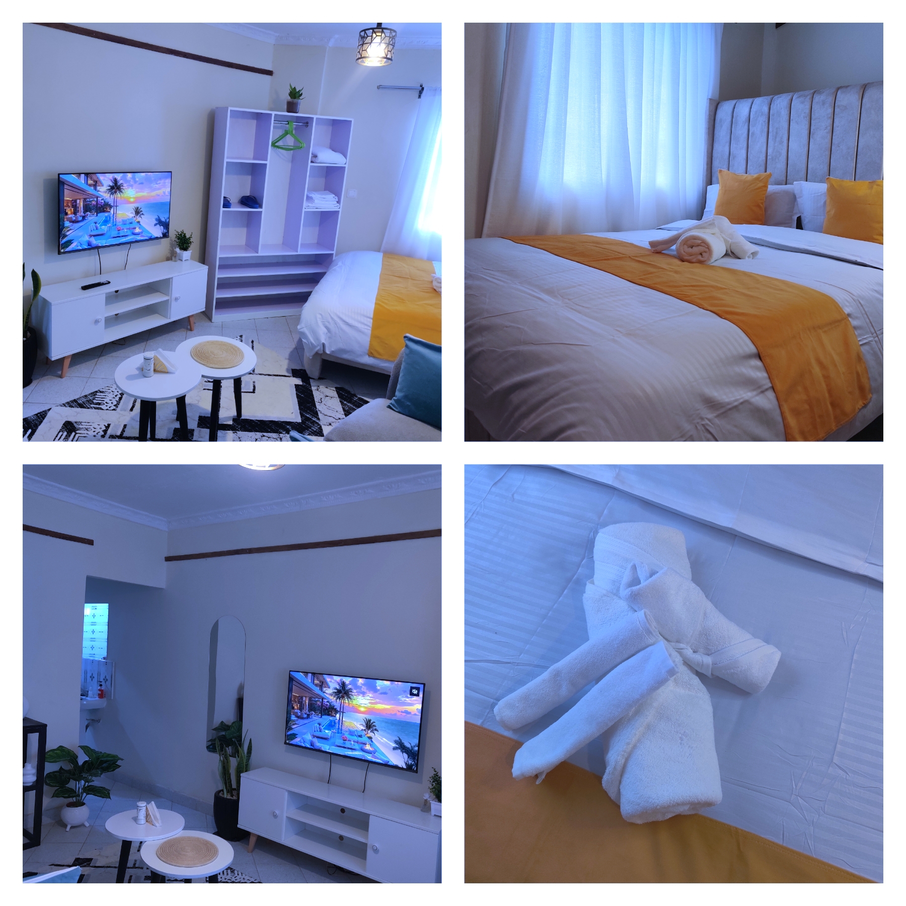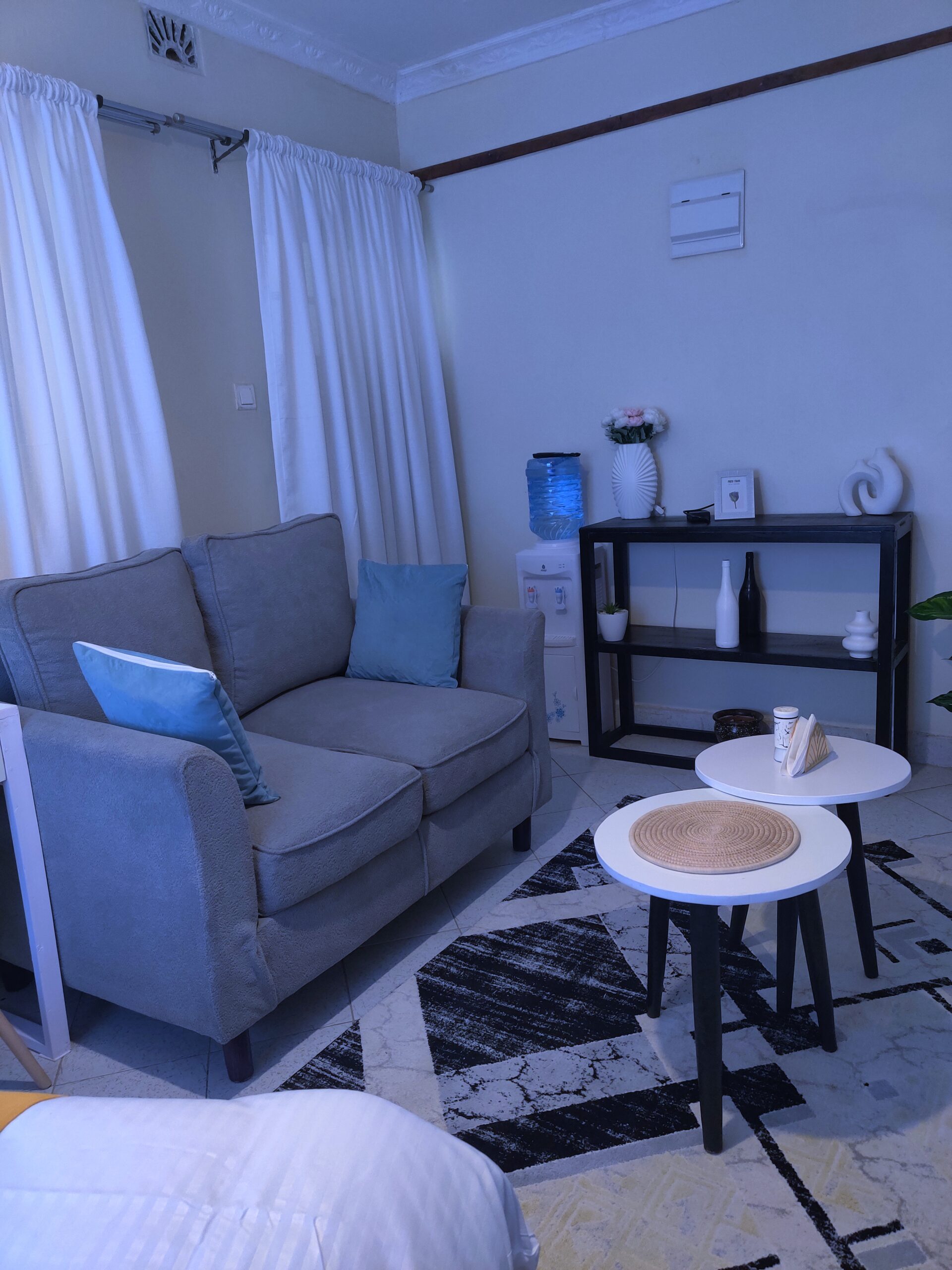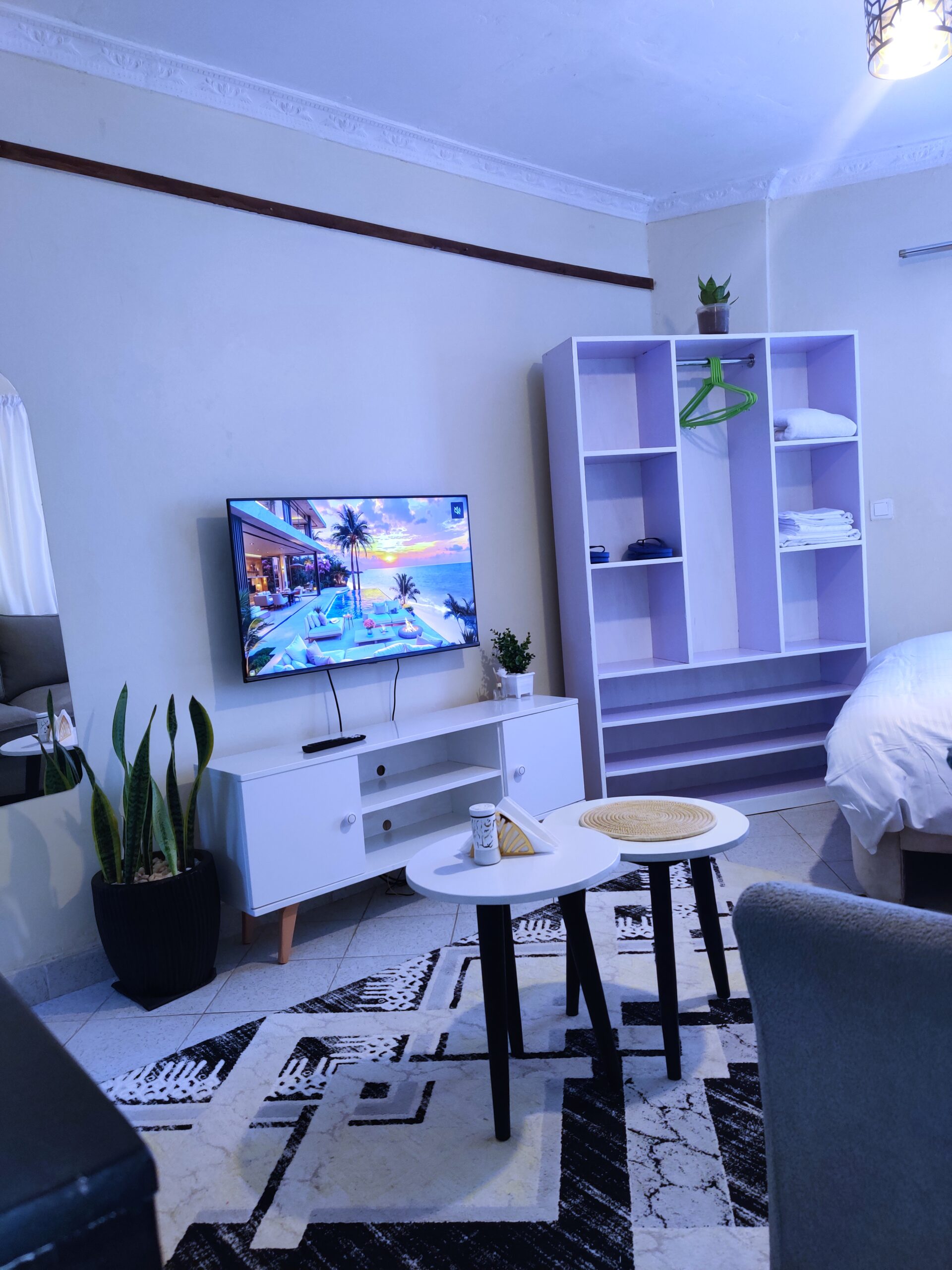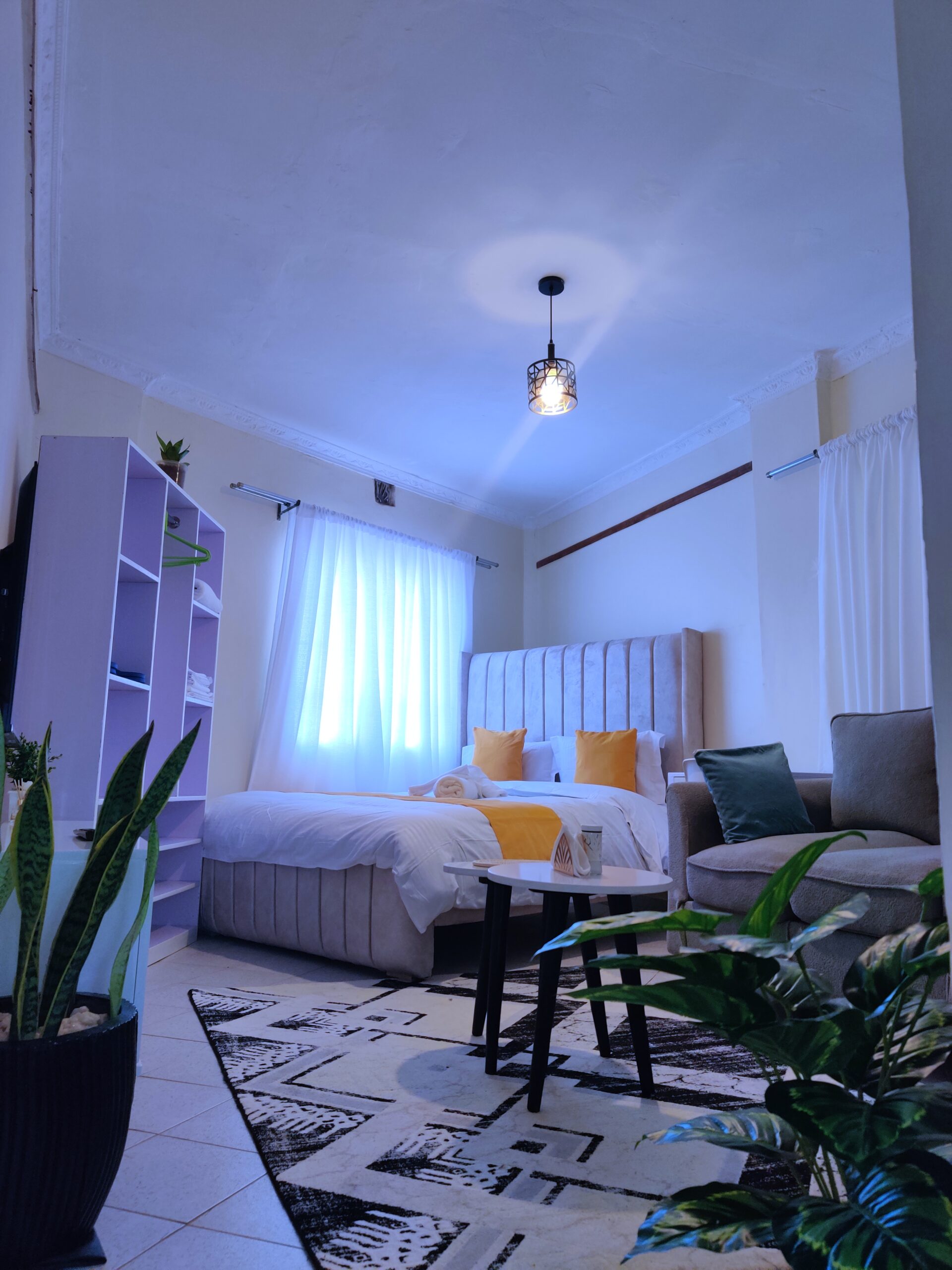 stylish and cozy one-bedroom BnB located in the heart of Kahawa Wendani. The space features modern interiors, warm lighting, and a comfortable queen-size bed designed for relaxation. Guests enjoy a spacious living area with a cozy couch, Netflix entertainment, and high-speed Wi-Fi.